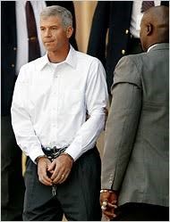 CFO Andrew Fastow van Enron wordt geboeid afgevoerd.